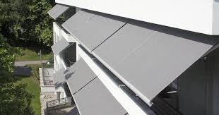 Store banne classique, intemporel et polyvalent qui peut facilement être utilisé dans de nombreux projets architecturaux. La forme sobre et filigrane de la marquise de balcon repose sur une construction simple avec ou sans tube porteur, ce qui lui confère un effet discret. Avec un angle d’inclinaison flexible, un auvent solide et un volant pratique. Les toiles offrent jusqu’à 100% de protection contre les UV. Idéal pour les grandes constructions.